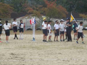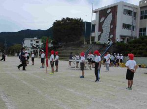 今年の運動会のスローガンは「えがお 〜 声をかけ合って 〜」です。スローガン達成に向けて、子どもたちも教職員も精一杯頑張ります。