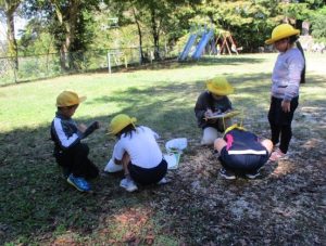 23日(木)に1年生は生活科の授業で稲荷神社へ出かけました。どんぐりやもみじの葉、少し黄色くなりかけたイチョウの葉などを見つけました。稲荷コンコン秋まつりの準備をされていた地域の方のご厚意で、もみじの枝を切っていただき、学校へ持ち帰りました。稲荷神社を出発して学校に向かうときには、「学校へ帰る途中でも秋見つけをしよう」という会話が飛び交いました。