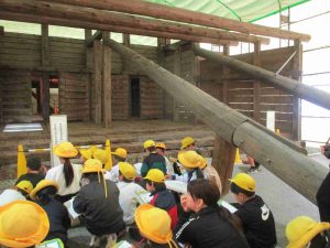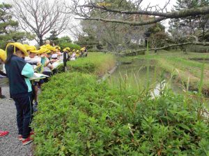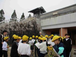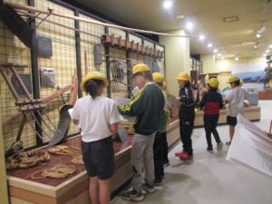 31日(金)に、4年生が社会見学で、海津市の輪中ミュージアムと木曽三川公園に行きました。洪水が頻繁に起きて苦労してきた地域の暮らしの工夫や三川の整備の歴史などについて、実物や貴重な資料を見て学びました。輪中に水が入らないようにするための工夫だけでなく、輪中の中の水を川へ流す工夫をしていることを知りました。また、稲を育てるための堀田、災害が起きたときに避難できるようにするための上げ舟、石垣を高く積んだ上に作られた水屋など、実際に見学することができました。