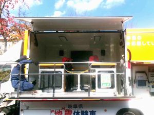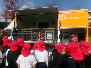 17日(月)に、3・4年生が起震車体験学習を行いました。南海トラフ地震が起きたときの想定震度6の揺れを体験しました。緊急地震速報が流れるとすぐにテーブルの下に入り、揺れに備えます。起震車のテーブルや椅子は動かないように床にしっかりと固定されており、起震車内には食器棚などは設置されていないので、食器などが落ちてくることがなく、テーブルの脚を持っていれば安心できます。しかし、実際にはテーブルも椅子も固定されてはいません。まわりには落ちてきたり倒れてきたりする物がたくさんで、いざとなると慌ててしまいます。揺れを体験することで揺れや危険をイメージできるとよいなと思います。