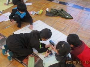 2月の山びこまつりに向けて、各山びこグループの5、6年生が準備を始めています。段ボールや風船、空き缶、紙コップなどを使って楽しいゲームを考えました。遊び方を模造紙に書いたり段ボールを切ったり、自分たちで実際にやってみてルールを考えたり・・・。話し合いや試行錯誤を繰り返して準備をしています。当日がとても楽しみです。