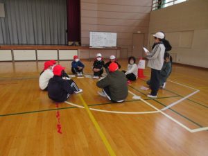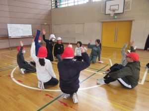 午後からの瑞浪南中学校半日入学の前に、3・4時間目は稲津小学校で陶小学校6年生との交流会を行いました。5つのグループに分かれて自己紹介をし、「共通点探しゲーム」をしました。「犬派の人!」や「今朝、朝ごはんを食べてきた人!」などと聞きながら、グループ全員に共通することを探しました。「風船バレー」や「なんでもバスケット」も行い、楽しく交流しました。