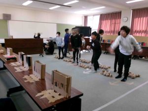 ①ピンポン玉転がし②ストライクミッション(ペットボトルボーリング)③空き缶タワー④新聞輪投げ⑤ボールで的を当てまくれ!(的あて)⑥スーパーボウリングブラザーズ⑦じしゃくワールド⑧バルーンタイムアタック(風船運び)の8つのアトラクションは工夫いっぱいでした!