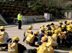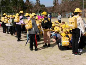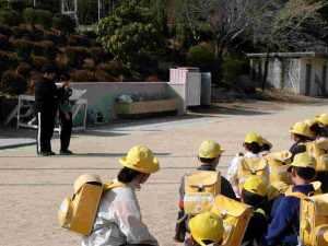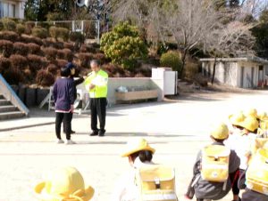 9日の集団下校時に「分団引き継ぎ会」を行いました。新しい分団長さん、副分団長さんへ分団旗を受け渡して引き継ぎました。新しい分団長さんは、「わからないことは教えてもらいましょう」と旧分団長さんからアドバイスをもらいました。新分団長さん、新副分団長さん、安全な登下校をよろしくお願いします。