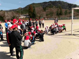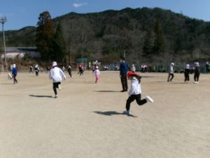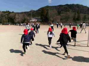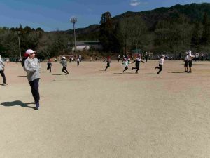 今日は、1・2年生と「ふやしおに」をしました。1回戦目は6年生が鬼になりました。さすが6年生、速い!広いグラウンドを駆け回り、10分たらずで終了しました。2回戦目は1年生7人が鬼になりました。今回はなかなか捕まえることが難しかったのですが、全員が鬼になって終わりました。